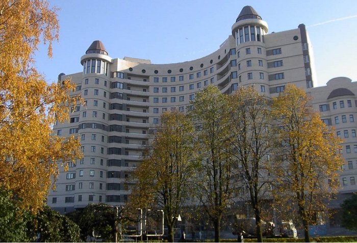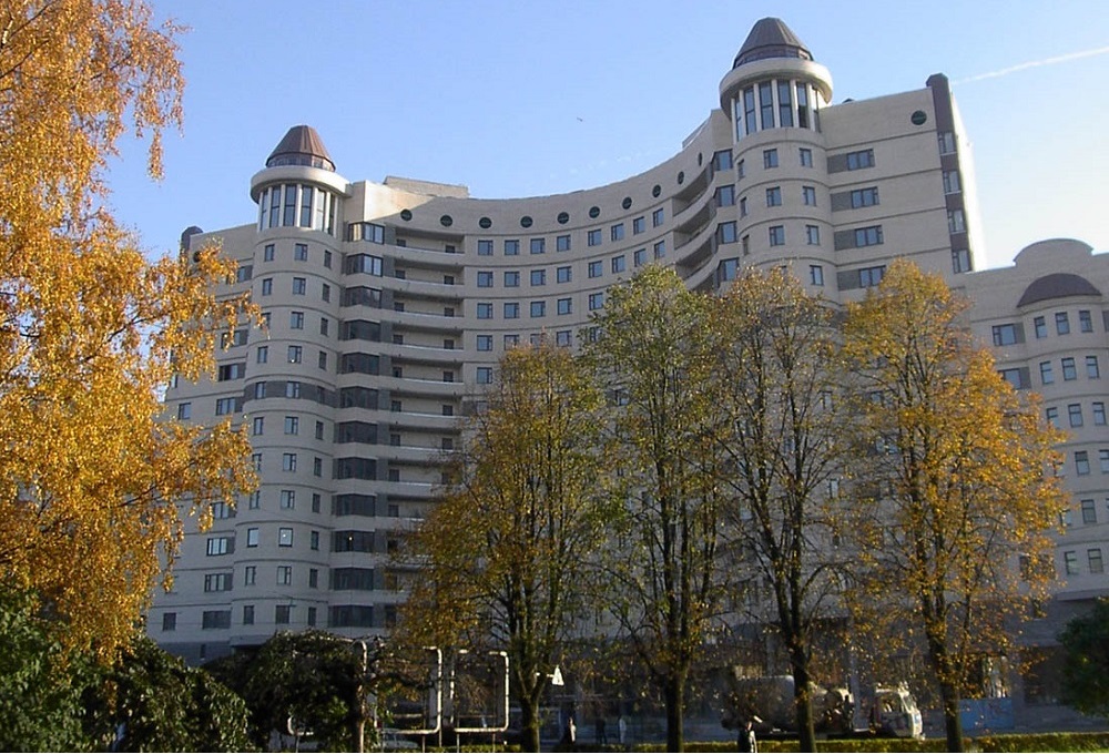 Closed parking lot of an apartment building on Uchebniy Lane